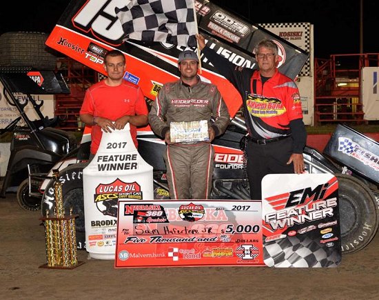 GREENWOOD, Neb. (September 30, 2017) Adding his name to the list of winners at yet another track, Sam Hafertepe, Jr. picked up his 15th Lucas Oil ASCS National Tour presented by the MAVTV Motorsports Network victory of the season with a $5,000 payday in the Casey's General Store Midwest Fall Brawl at I-80 Speedway.