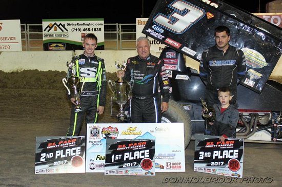 Joined on the podium by Jake Bubak and Aaron Reutzel, Tennessee's Sammy Swindell was the class of the field at El Paso County Raceway (ASCS / Don Holbrook)