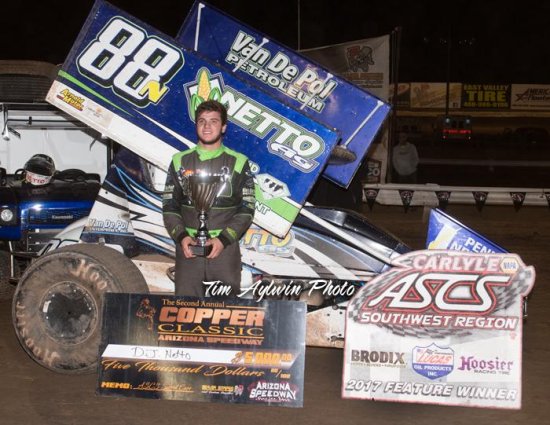 QUEEN CREEK, Ariz. (November 25, 2017) Sweet redemption was on tap for California's D.J. Netto, as a DNF on Friday night turned to Victory to close out the second annual Copper Classic at the Arizona Speedway with the ASCS Southwest Region.