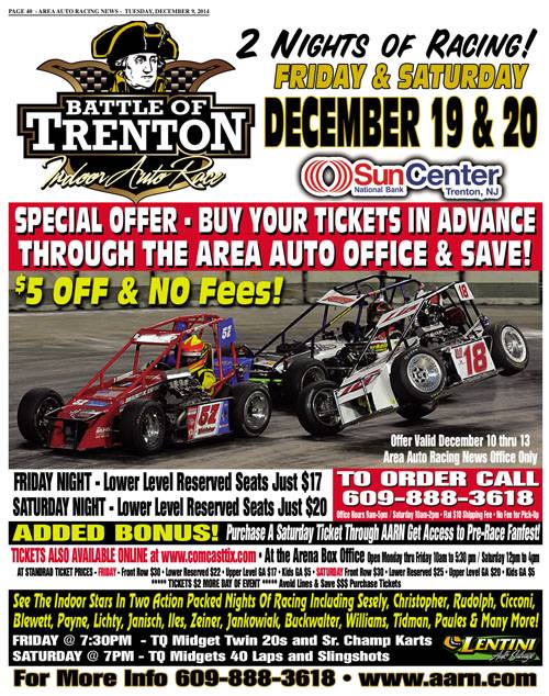 $5 off reserved lower level tickets to the Battle of Trenton on Friday, December 19 ($17) & Saturday, December 20 ($20). PLUS! If you buy a Saturday ticket you get a fanfest ticket at no charge! No ticket fees just $10 shipping & handling! Offer starts Wednesday and runs through Saturday. Valid only through the AARN office by calling 609.888.3618