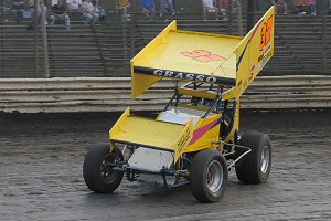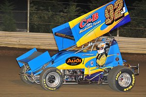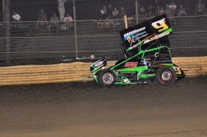 The turning point of the race came on lap seventeen when a right rear tire blew on the Biasi sprint car, displaying the yellow flag. It was an unfortunate turn of events for Biasi who had a great run well in hand.