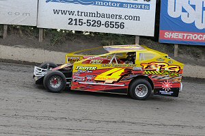 Even with Mother Nature sending threats of bad weather, the staff of the Thunder on the Hill Racing Series challenged all the odds and successfully presented their 100TH event on Tuesday night at the Grandview Speedway. "Tonight marked a milestone event and Bruce Rogers and I were determined to run this show, and the large crowd that turned out with threatening weather made it all even more meaningful", commented event Co-Promoter Bob Miller. Tyler Walker earned $5,000 for his win in the third event of the 2011 Pennsylvania 410 Sprint Speed Week Series. Duane Howard of Oley, PA sorted out the traffic in the 25 lap 358 Modified feature to score the win. A doom and gloom weather forecast did not dampen the spirits of the drove of fans that turned on for the historic 100th Thunder Series event.