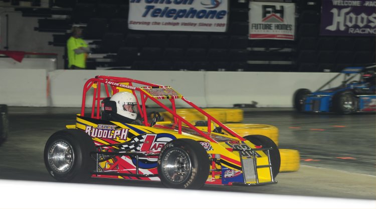 Erick Rudolph won the 40-lap Ironton Telephone TQ Midget feature inside the PPL Center in Allentown, PA. Ryan Flores finished second followed by Mike Lichty, Jimmy Blewett, Tim Buckwalter, Rob Neely, Anthony Sesely, Patrick Emerling, Jonathan Reid and Earl Paules.