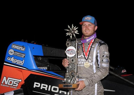 In Thursday night's "Smackdown VII" opener, the Indianapolis, Indiana driver became the first to win three consecutive "Smackdown" features, winning the final two nights of last year's edition before capturing his latest, leading the final 11 laps after sliding past last year's opening night victor C.J. Leary on the way to his 14th career series victory, tying him with the likes of Billy Cassella, Jim Hurtubise, Lee Kunzman and Bruce Walkup on the all-time list aboard the Clauson Marshall Newman Racing/Priority Aviation - Competition Suspension, Inc./Spike/Rider Chevy.