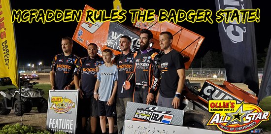 PLYMOUTH, Wis. (July 26, 2019) - Snapping an All Star winless streak that dates back to May of 2015, Brisbane, Australia’s James McFadden helped the Ollie’s Bargain Outlet All Star Circuit of Champions presented by Mobil 1, as well as the Bumper-to-Bumper IRA Outlaw Sprint Series, kick off their four-day trip through the Midwest by finding victory lane, doing so at the always-exciting Plymouth Dirt Track in Plymouth, Wisconsin, on Thursday night, July 25.