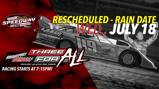 Bridgeport, NJ - Bridgeport Speedway has decided to push back Tuesday’s racing program to their original scheduled rain date of Wednesday, July 18. The Super Late Models, 358 small blocks, and USAC East Coast wingless 360 sprint cars will now thrill the crowd a day later on the all new Design for Vision/Sunglass Central 3/8 mile.